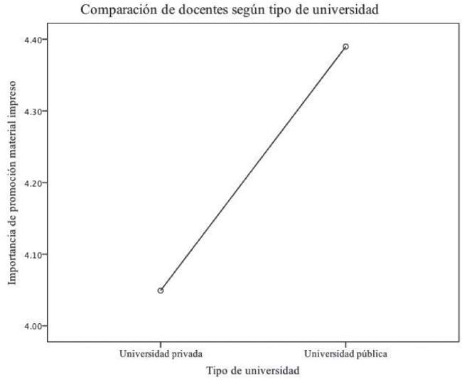 También, se evalúo la importancia que las docentes le otorgaron a un conjunto de prácticas orientadas a promover el conocimiento sobre el manejo del material impreso. Esta variable se exploró con una escala unidimensional que demostró tener características psicométricas adecuadas (alfa de Cronbach=.89, 5 ítems). En general, el total de docentes reportó asignar una alta importancia a estas prácticas (media= 4.17, DT=.83, en una escala de uno a cinco). Una vez más, las docentes graduadas del bachillerato en una universidad estatal (M=4.39, DT=.49) presentaron puntajes más altos en esta variable que las docentes graduadas por universidades privadas (M=4.05, DT=.95). Estas diferencias fueron significativas, t (1,192.47)=2.31, p=.02 (ver figura 2). No se detectaron diferencias por la tenencia o no de maestría ni por zona de procedencia.