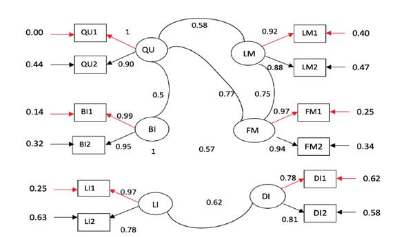 Cada una de ellas se emplea como indicador para medir la variable latente. Ello permitió obtener un modelo más parsimonioso.