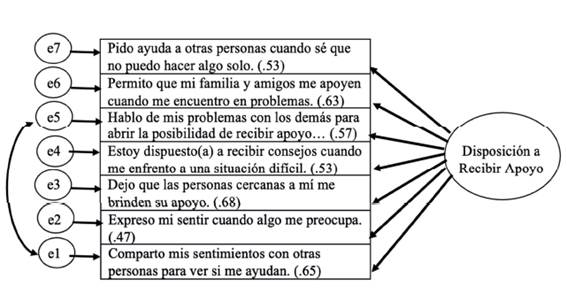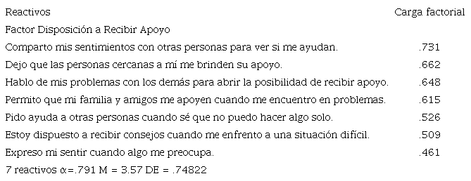Escala de Disposición a Recibir Apoyo Social (EDaRAS) fue diseñada a partir de la investigación de Gurung et al. (1997) y al considerar tanto las actitudes como disposiciones conductuales que guían hacia la posibilidad de recibir apoyo como compartir los propios sentimientos, dejarse ayudar, expresar el propio sentir ante una preocupación, pedir ayuda, hablar de los problemas personales a otros, permitir que la familia y amigos brinden ayuda cuando se tienen dificultades y mantener la disposición de recibir consejos ante una situación difícil. Al considerar esto, se diseñaron siete reactivos en formato tipo Likert de cinco puntos que indican frecuencia y que van de 1-Nunca a 5-Siempre (ver apéndice).