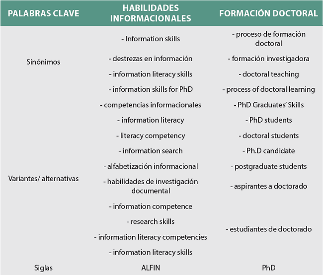 Keywords: informational skills, doctoral training, ALFIN, Information literacy.