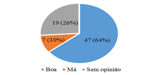Como se pode observar, 64% dos inquiridos afirmaram ser boa a relação com os bibliotecários enquanto 10% responderam ser má a relação. Os outros 26% afirmaram não ter nenhuma opinião sobre a questão.