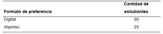 Asimismo, considerando que en los cursos de procesamiento técnico de la información el apoyo de las diferentes herramientas de normalización es esencial, se consultó: “¿en qué formato prefiere acceder a las herramientas de normalización utilizadas en el curso?”, a lo que se obtiene que la mitad lo prefiere en digital y la otra mitad impreso (ver tabla 3).