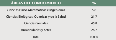 Ahora, de la muestra de 271 revistas preparada para fines de este trabajo, se contemplaron solo revistas mexicanas, tomando en cuenta a aquellas indizadas también en Latindex catálogo 2.0. Se trata de 135 revistas editadas en México, de las cuales 29 no están en Latindex catálogo 2.0, por lo que, al final, se analizaron 106 revistas y sus respectivos 12 028 documentos disponibles en Biblat en el periodo 2015-2019. Se utilizó la clasificación de áreas del conocimiento de la Biblioteca Digital de la UNAM[2], la cual consta de cuatro grandes áreas, algunas revistas se clasificaron en más de un área porque son multidisciplinarias. De acuerdo con la Tabla 4, la mayoría de las revistas se catalogó dentro de Ciencias Sociales con un 45.8 %, seguido de las Humanidades y Artes con un 26.7 %, las Ciencias Biológicas, Químicas y de la Salud con el 21.7 % y, con una pequeña parte, las Ciencias Físico-Matemáticas e Ingenierías con un 5.8 %. Juntas, las Ciencias Sociales y las Humanidades y Artes representan el 72.5 %, lo cual confirma la inclinación de Biblat en esas áreas.
