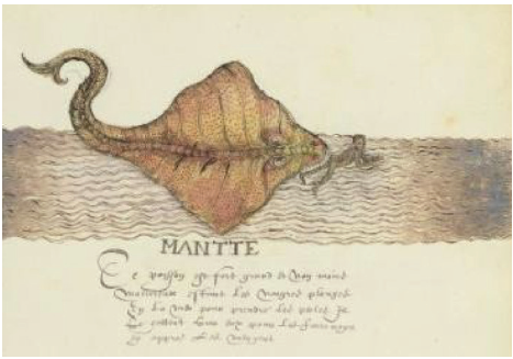 El viajero en su paso por la isla de Margarita relató que “entre los monstros marinos más carnívoros y comunes en estas costas son los tiburones y las mantas”, esta última será incluso la más temida, pues la describe como una