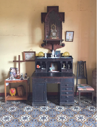 Varias de las viviendas contaban con oratorios en donde los familiares, la mayoría fervientes de la doctrina católica, tenían un espacio reservado para la oración y veneración de la imaginería religiosa nacional o extranjera. En la misma entrevista Emilce Salas aclara sobre el oratorio en la casa de Eudocia Chacón, nacida en 1868, hija de Santos Chacón Sancho y María Josefa Barquero. En algunas casas de Santo Domingo se conservan espacios como esos antiguos oratorios; tal ejemplo se registró durante el 2016 en la visita y entrevista a María Aurelia (Lela) Azofeifa Barquero (1918-), en Santo Tomás, hija de Fulgencia Barquero Zamora, conocida como Lencha. El oratorio es un aposento en el ala derecha de la casa donde existen diferentes tipos de imaginería religiosa, camarines y mobiliario para albergarlos.
