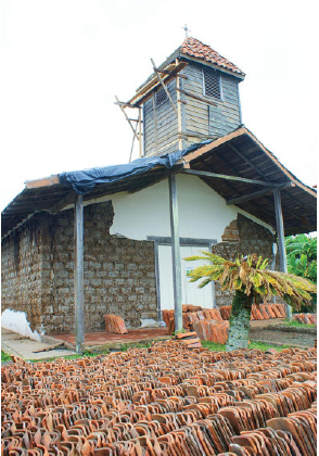 En Costa Rica, el código sísmico “prohíbe el uso estructural de materiales y sistemas constructivos como adobe, tapial, bahareque relleno y mampostería sin refuerzo” (Aranda, González y Rotondaro, 2017, pp. 507-519). Esto a diferencia de otros países latinoamericanos e iberoamericanos, en donde se concibe la construcción, se analiza y estudia en universidades y carreras de arquitectura e ingeniería a través de la Red Iberoamericana PROTERRA19. La prohibición en Costa Rica se dio en el año de 1910, producto del terremoto de Cartago, y con esto no se permitió más sus construcciones. A pesar de catalogarlas como inestables, la restauración del Templo Patrimonial del Carmen se convierte en ícono de la restauración y conservación en Santo Domingo que posee más de 140 años a la fecha. En el país existen cinco iglesias de adobe y tres de bahareque20, además de otro número significativo de viviendas construidas con este material (Esquivel, 2016a, p. 182). Una buena construcción, restauración y conservación permite que este tipo de edificaciones vernáculas perviva a lo largo del tiempo. La arquitecta María Bernadette Esquivel comenta que gracias a la restauración del Templo El Carmen en San Miguel se despierta un interés nacional que ha desarrollado talleres por lo que se expone lo siguiente: