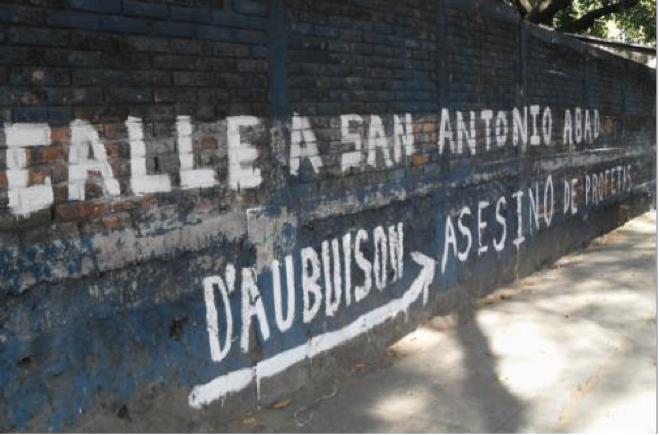 En diciembre de 2014, el alcalde de ARENA en San Salvador anunció que planeaba cambiar el nombre de una de las calles principales de la ciudad, la calle San Antonio Abad, nombrándola por Roberto D’Aubuisson. Un artista de grafiti calificó a D’Aubuisson como un “asesino de profetas”. La pérdida de ARENA en la elección de la alcaldía de 2015 llevó a la restauración del nombre antiguo.