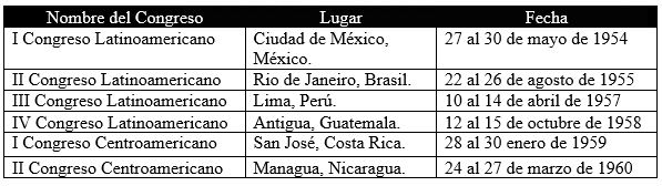 Por la complejidad, tanto geográfica como espacial de los congresos mencionados, es importante resaltar que la documentación que se utilizará corresponde a distintos archivos, como el Archivo General de la Nación (AGN) en la Ciudad de México, el Archivo Histórico de Cancillería (AHC) en Buenos Aires, Argentina, el Archivo personal Eduardo Taracena de la Cerda del Archivo Histórico del Centro de Investigaciones Regionales de Mesoamérica (CIRMA), en Antigua Guatemala, y algunos disponibles en línea como el Archivo Histórico de la Policía Nacional (AHPN) de Guatemala y el Electronic Reading Room del Freedom of Information Act (FOIA). Además, de una revisión hemerográfica de distintos países.