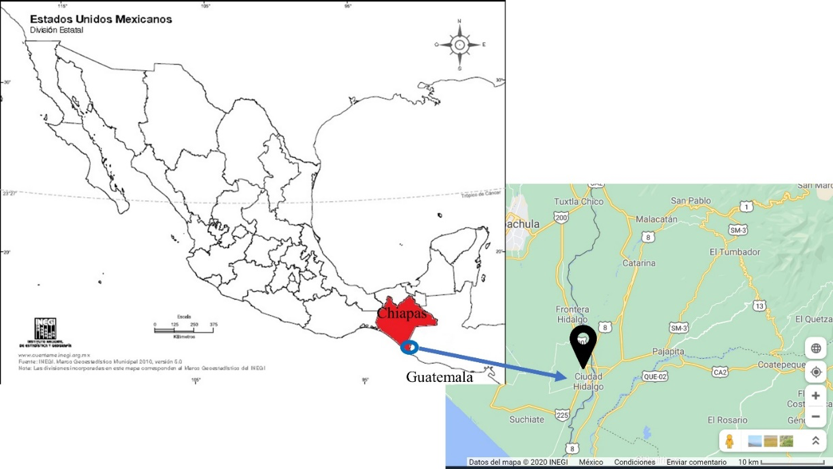 Ciudad Hidalgo (México) es una pequeña urbe localizada en las riberas del río Suchiate que sirven como límite fronterizo internacional con Guatemala, específicamente con Tecún Umán (Figura 1). Ciudad Hidalgo es la cabecera municipal del municipio de Suchiate, estado de Chiapas, con 34 mil habitantes (Instituto Nacional de Estadística y Geografía, 2015)3. Este asentamiento fronterizo ha sido, desde hace varias décadas, sitio de empleo de numerosos guatemaltecos que vienen a trabajar de forma temporal o realizar compras en la ciudad de Tapachula (Arriola, 1995; Rojas y Ángeles, 2003). También ha sido un lugar de tránsito habitual de migrantes procedentes de otros países centroamericanos que intentan llegar a los Estados Unidos (Castillo y Toussaint, 2015; Fernández, 2017).