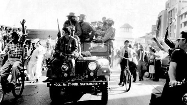 Todos los individuos, hombres, mujeres y niños, que se concentraron a lo largo de las carreteras y avenidas volteaban hacia arriba, para dirigir sus miradas en ese ángulo ascendente hacia Fidel. Ya en la zona urbana, sus habitantes observaban desde muchos de los edificios, admirando el paso del héroe, del “Libertador”, aplaudiéndole, agitando banderas, lanzando vivas. Sus hombres le acompañarían de cerca, con sus armas largas, así como largas eran también sus barbas. Los uniformes verde olivo, que en las fotos blanquinegras no pueden apreciarse, se convertirían en el color de la victoria, de la lucha, de la esperanza, y el polvo de esas vestimentas sería tomado como el ejemplo memorable de la entrega ofrecida por meses en la Sierra Maestra. Esta descripción es resultado de lo que aparece en las imágenes de aquel tiempo. Erróneo sería considerar que al referir aquella alegría se trata de una exaltación a todas las décadas del proceso político castrista. Una lectura de las imágenes fotográficas de aquellos días debe presentar los trozos de realidad que allí se encuentran capturados.