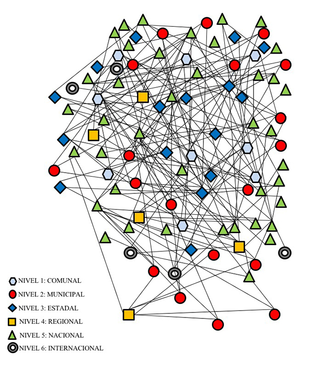 El análisis de los actores se realizó en seis niveles de acción: Nivel 1: comunitario, Nivel 2: municipal, Nivel 3: estadal, Nivel 4: regional, Nivel 5: nacional y Nivel 6: internacional; que presionan y se vinculan con tres escalas espaciales en las que se presentaron los casos de estudio: Escala 1: comunitarios, Escala 2: una cuenca hidrográfica y en la Escala 3: el estado Bolívar.