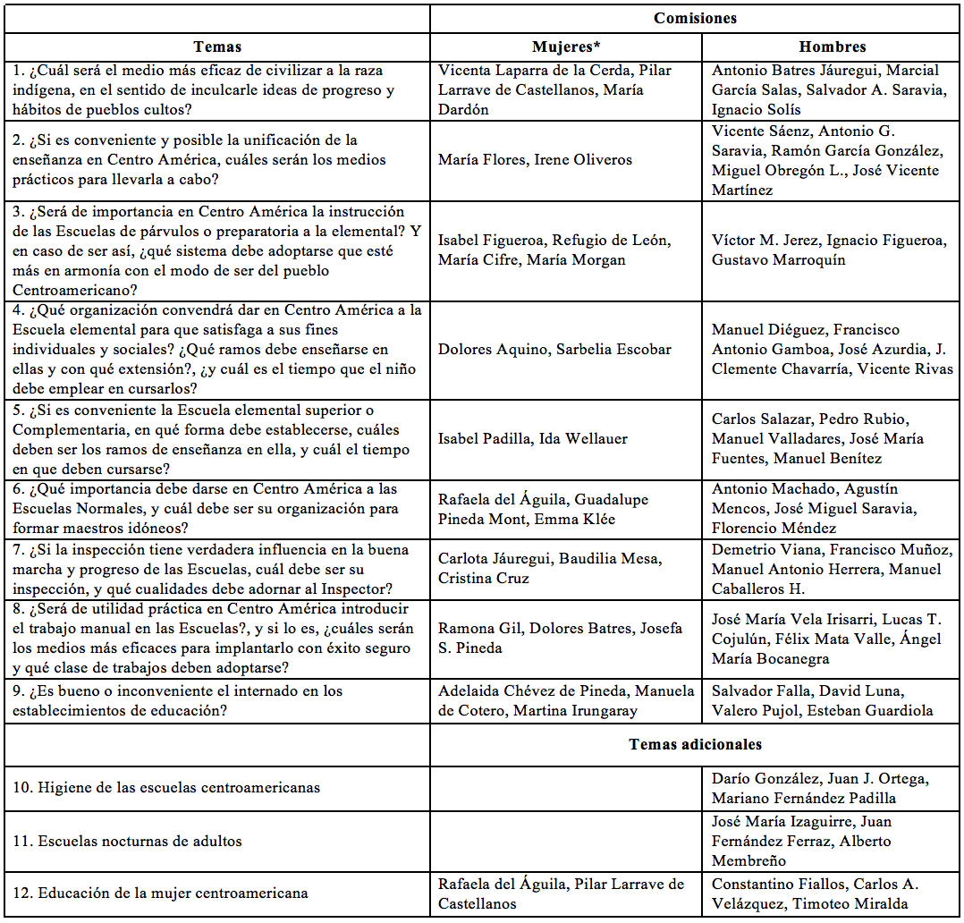 El presente artículo se propone analizar los temas que cobraron más relevancia en el Congreso Pedagógico Centroamericano o que fueron más polémicos en el transcurso de las sesiones. Es importante aclarar que no se revisará si los gobiernos centroamericanos implementaron, o no, algunos de los acuerdos suscritos por aquella asamblea. Así, el fin último de este trabajo consiste en mostrar cómo aquellos y aquellas centroamericanas razonaron acerca de temas pedagógicos que tenían profundos vínculos con la sociedad, la cultura, la política y la historia. El trabajo se fundamenta en el análisis del informe del congreso preparado y publicado en 1894 por el intelectual Darío González, quien fue uno de los principales organizadores del foro pedagógico. En primer lugar, se analiza el uso de los conceptos “patria”, “pueblo” y “nación” por parte de los organizadores y los congresistas, así como el ideal de la unión de Centroamérica al que apelaron. En segundo lugar, se aborda la participación de las mujeres en el foro pedagógico. En tercer lugar, se revisan los argumentos planteados acerca de cómo civilizar a la raza indígena. En cuarto, se analiza el ideal de formar obreros y soldados para la patria centroamericana. Por último, se revisa la discusión en torno a la escuela laica. El artículo cierra con un epílogo.