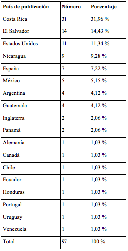 El presente ejercicio de revisión bibliográfica también permitió determinar cuáles son los sitios donde se encuentran las instancias que publican estas investigaciones. Los resultados evidencian que casi la mitad de los trabajos que conforman la muestra fueron editados en San José o en San Salvador (Cuadro 2). Esto es coincidente con la cantidad de estudios sobre estos dos países que se han expuesto previamente.