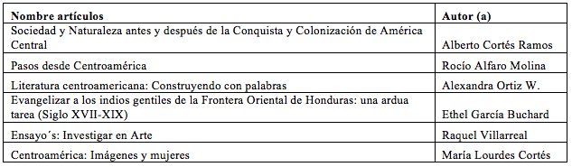 Desde su primer número publicado en julio de 2002, este proyecto editorial intenta mostrar la variedad de factores históricos y culturales que convergen en la región y que, al mismo tiempo que la constituyen, la diferencian y unifican a la vez que forman parte de su gran diversidad cultural. Es por eso que en aquel primer número se incluyen artículos que destacan esa riqueza y variedad, de los procesos históricos de un área específica y de la región en general, y también de su diversa producción literaria y artística, como se puede observar en el Cuadro 1.