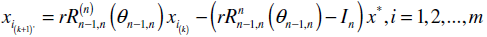 [2]Where r must be between zero and one to prevent the divergence of the point. Equation (2) represents a discrete logarithmic spiral with convergence point set at the origin. A more flexible situation (i.e. arbitrary convergence point) is represented by eq. (3), where x1(k), are the starting points, and x* is the convergence point.