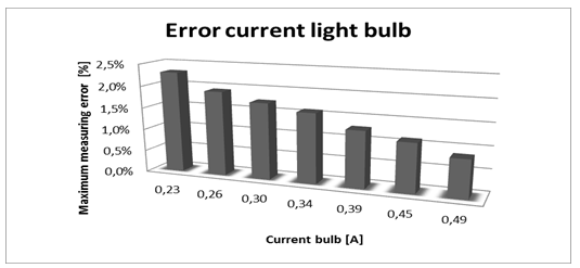 Figure 5 shows that with higher current levels, the error decreases, and the maximum and minimum errors are 2.3% and 0.9%, respectively.