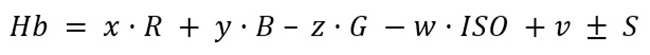 According to the model’s definition for sample surfaces with darker skin tones, lower red values of RGB samples result in higher Hb values.