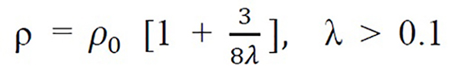 Substituting λ = t/l, the equation reduces to to ρt = ρ0t + (3 l (1-p))/8 〖 ρ0