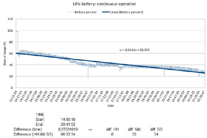 Once the programming details were solved, the pedestrian path tests were repeated considering the duration of the lithium polymer battery used, which had a capacity of 1200 mAH for the analysis on that occasion (see Figure 10).