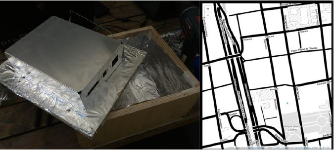 The initial test consisted of verifying the performance of the module in an urban environment, evaluating the quality of the link with the cellular network, the accuracy of the location according to the GPS network, the response of the humidity and temperature sensor, and the response of the service in the cloud. For this, an encapsulation model made of cardboard was used to avoid any communication problem due to the use of a material that does not allow good reception of the cellular signal and GPS.
