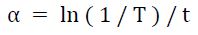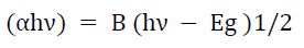 Analysis of optical absorption spectra is one of the most productive tools for understanding and developing the band structure and energy gap. The optical absorption coefficient (α) is related to the transmission (T) of a specimen [27] is given by equation (1).