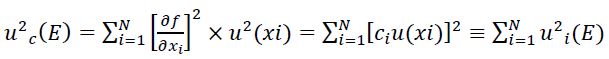 And according to the law of propagation of uncertainties, the expression for the combined standard uncertainty (it is assumed that there is no correlation between the variables) is: