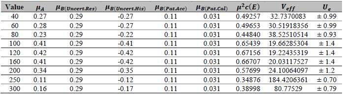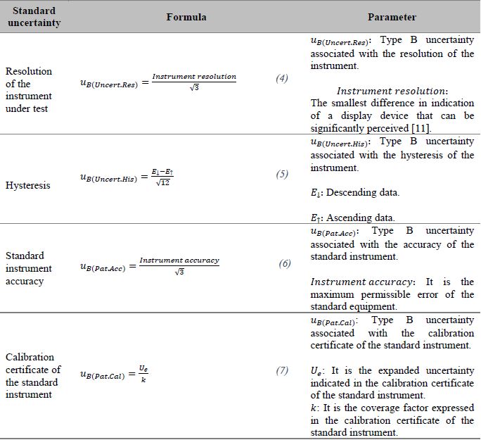 The estimation of uncertainty in the calibration is proposed according to what is established in a non-stochastic methodology such as the Guide to the Expression of Uncertainty in Measurement (GUM) [15]. This has been used in different processes from analytical chemistry tests [16], gamma-ray spectrometry [17], as well as in the application in measuring instruments such as electromagnetic compatibility tests [18].
