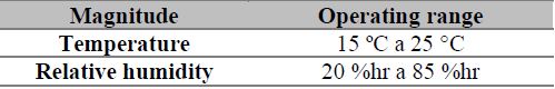 It is necessary to measure the temperature and relative humidity of the place where the calibration is carried out to confirm that this place does not exceed the temperature and humidity conditions described in this section. Therefore, it is necessary to have a traceable thermo-hygrometer that can measure environmental conditions during calibration. Additionally, the thermo-hygrometer must take the maximum value and the minimum value obtained during the process, and these data must be recorded. Similarly, the laboratory facilities' environmental conditions where the standard equipment is guarded must be taken, bearing in mind the permitted ranges as established in table 3.