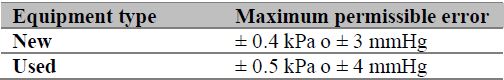 The thermal balance between the sphygmomanometer, the reference manometer, and the environment must be monitored for 20 minutes until the environmental conditions stabilize in the intervals described in table 3. If it does not stabilize, the calibration cannot be performed. If these conditions are exceeded during the calibration, the calibration must be stopped and wait for the conditions to stabilize. When this happens, the calibration is started from zero. If, on the contrary, the conditions do not stabilize, it must be suspended. Subsequently, pre-charges must be performed to excite the system of the equipment under test at 50% and 90% or 100% of the scale, in addition to performing an air leak test as previously described in the technical specifications to do so, which should set the value to be measured on the standard instrument and count the time of the leak with the stopwatch. The leakage should not exceed 0.5 kPa / min (4 mmHg / min); If the instrument under test exceeds the maximum permissible error in the leak test, this should be recorded and rejected.