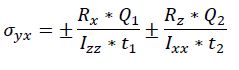 The shear stress absolute in the analysis point is estimated by the overlay of two loads perpendicular to the axial axis that respond to reactions in X and Z ( Rx and Rz ), being coplanar to the plane of the analysis section in the component described in Equation 13.