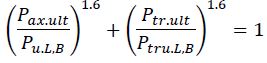 The applied load has axial and transverse components, with the loads already calculated previously defining a permissible load curve with Equation 16.