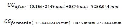 As a result of the estimate, the longitudinal displacement of CG in the aircraft is schematically obtained, as shown in Figure 8.