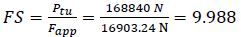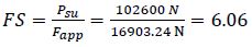Finally, the safety factor is calculated according to the last load and the load applied to the lug, showed in Equation 20.
