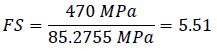 The estimation is made by the failure theory of the Von Mises criteria to get the Safety Factor at the analysis point [9] by means of Equation 15.
