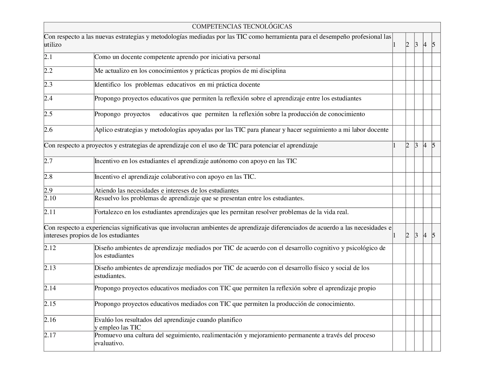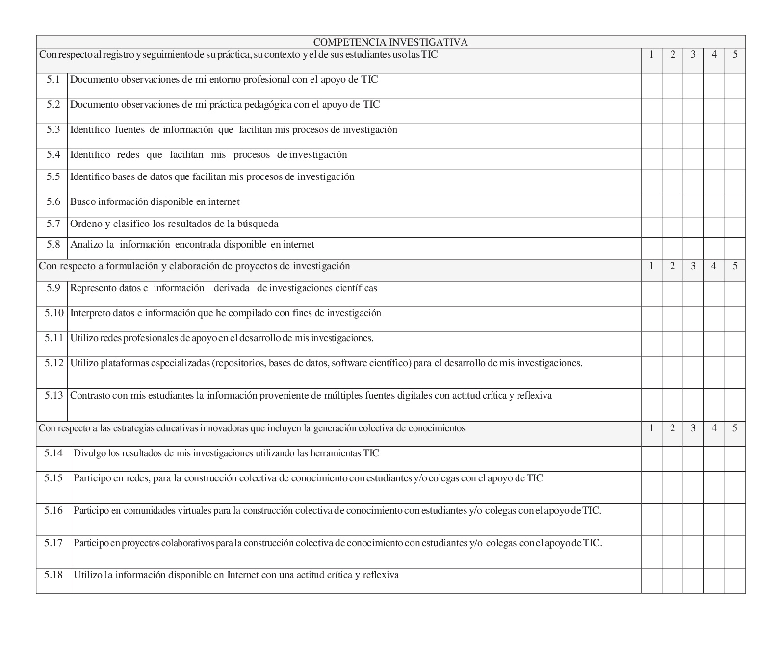 5.2 Niveles de competencias TIC