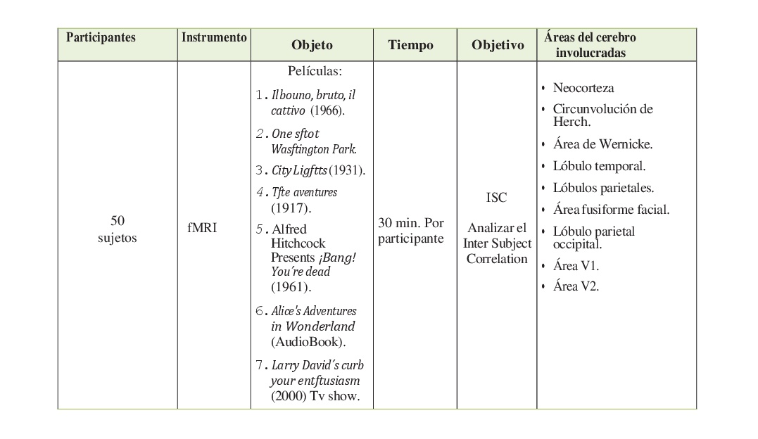 2. Escoger artículos que presenten experiencias pertinentes a las neurociencias que analicen lo que percibe el cerebro de una persona o personas que observan una obra audiovisual. En caso de no encontrase continuar con el paso 2.