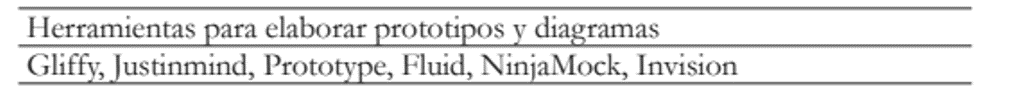 La tabla 9 muestra algunas herramientas que pueden contribuir al diseño de prototipos de interfaces para aplicaciones móviles.