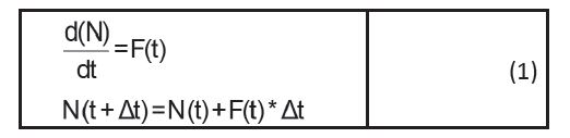 La relación entre la variable Flujo (F) y la variable Nivel (N) de la figura 7 equivale a una ecuación diferencial que el software de DS asume en términos de una ecuación en la notación de Euler así: