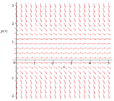 Después de pensarlo algún tiempo, Fabio creyó que P=N era otra solución de equilibrio, lo cual efectivamente era cierto. Luego cada estudiante debía bosquejar las soluciones junto con las soluciones de equilibrio en el plano P-t . A los cinco estudiantes les resultó relativamente fácil bosquejar las soluciones de equilibrio, pero se preguntaron cómo bosquejar otras soluciones.