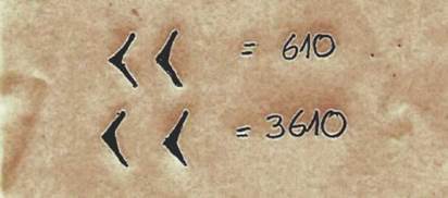 Esto muchas veces generaba ambigüedades y, para poder interpretar la cantidad que se representaba, era necesario tener en cuenta el contexto en el que se escribían los datos (Burton, 2011; Kaplan 2004; Seife, 2006). El problema se complicaba aún más cuando era necesario dejar una casilla vacía, como es el caso de la representación de 3610 (figura 4), pues se usaban los mismos símbolos que para escribir 610.