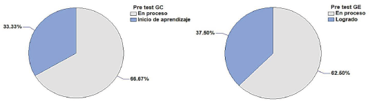Se observa también que en el GE no hay niños ubicados en el nivel de inicio de aprendizaje y los porcentajes son similares. El GE muestra un porcentaje mayor de niños con la competencia lograda al inicio de la investigación.