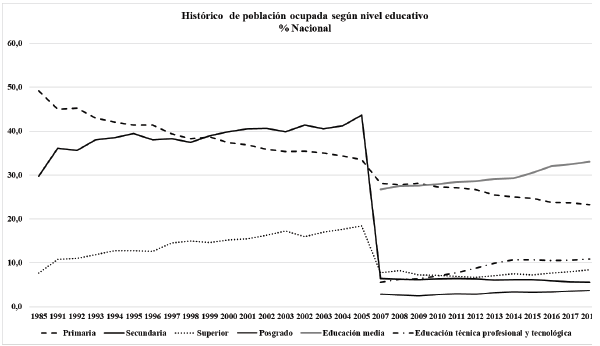 DANE. (1985). Indicadores de empleo del personal ocupado, por nivel educativo (1985, 2018). https://www.dane.gov.co/index.php/estadisticas-por-tema/mercado-laboral/empleo-y-desempleo.