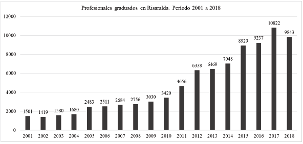 Abstract: Through documentary research and statistical data, this article compiles historical, economic, social, and cultural facts regarding the configuration and development of higher education in the department of Risaralda, in an economic environment that, for some time now, has not achieved the necessary dynamics of growth to provide a working environment in which present and future generations can develop professionally, since the gap between the number of graduates and the vacancies offered by the employment market has been widening. Using objective data, the aim is to prove that the overabundance of graduates in a shrinking employment market makes it difficult for new professionals to fulfil their expectations of finding better job opportunities. Consequently, a question emerges about whether what Bourdieu theorized on the creation of a "cheated generation" is taking place in Risaralda, a generation that bet on education to acquire knowledge, that has rights granted in the titles, and that needs-but fails to achieve-positions of greater recognition within the social space.