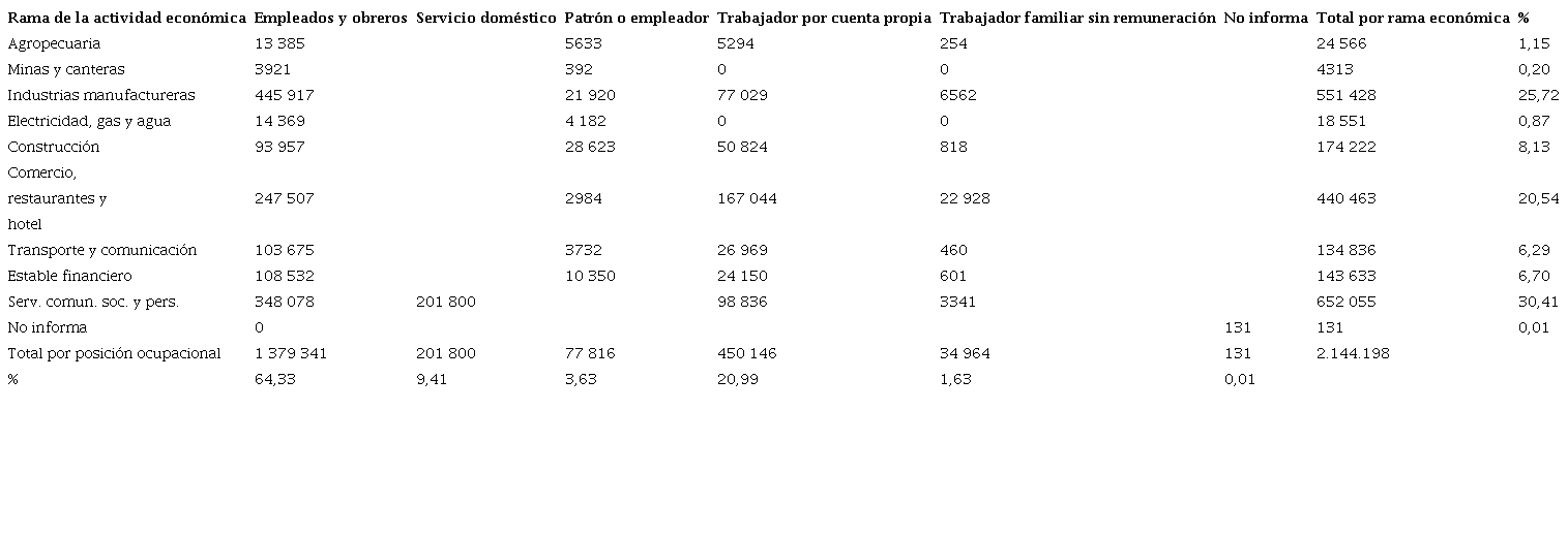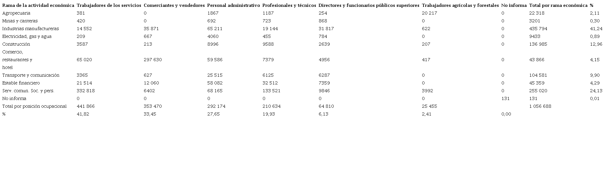 Dentro de la fuerza de trabajo, el grupo de los ocupados se distribuyó por posiciones ocupacionales según las ramas de actividad económica a las que podrían aspirar. En 1973, había un importante número de actividades de la economía sin especificar, así como trabajadores que no podían ser clasificados en ellas. Por lo anterior, y sin perder de vista los datos arrojados por el censo de 1973, se utilizaron los datos de la Encuesta de hogares de 1977, cuyo tamaño de muestra incluyó 2 144 198 habitantes, clasificados como ocupados dentro de la PEA. El dato fue acopiado por el DANE para las cuatro capitales más grandes del país y la distribución se puede ver en la tabla 4. Allí, los sectores de actividad económica con mayor número de trabajadores contratados fue servicios comunales sociales y personales12 -30,41 %-, seguido de la industria manufacturera -25,72 %- y luego el comercio, restaurantes y hoteles -20,54 %-.
