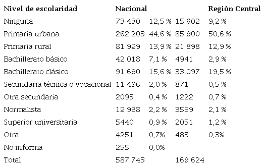 Otra cifra disponible es la de los desocupados15 según el nivel de escolaridad. En la tabla 6 puede observarse que los mayores porcentajes de desocupación son para la categoría primaria urbana, tanto a nivel nacional -44,6 %- como regional -50,6 %-, mientras que, en la categoría de educación superior universitaria, el número de desocupados es del 0,9 % y 1,2 %, respectivamente. Por supuesto, para la época la mayoría de la población aún no alcanzaba niveles de escolaridad muy altos. Todavía no estaba en auge la masificación de la educación superior, pero los índices de desempleo estaban latentes.