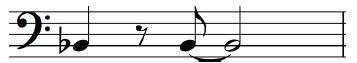 short diatonic phrases of crotchets or quavers played in half time for one or two beats; these are full of swing, and their dynamic tends to the forte. Throughout the sound signal the rhythm section plays an accompaniment in 2 or 4 with a feeling of double-time. (p. 52)