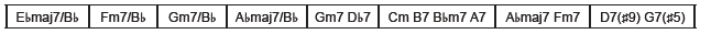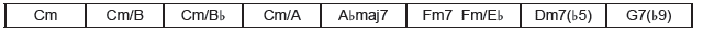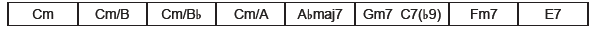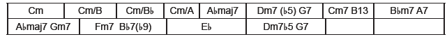 Let's look next at the musical form of MFV. The harmonic structure, which I have based on published sources and decades of performing experience, follows a basic Tin Pan Alley chord sequence, namely AABA. The first A section has the following chord progression-in the key of C minor-(table 1).