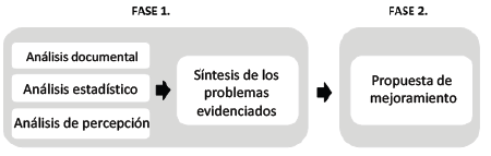 Para ello, es necesario, siguiendo a Hernández et al. (2014), abordar dos fases: una diagnóstica -analítica-y otra propositiva (figura 1), en las que se tome como referente un diseño no experimental en el que se puedan medir o evaluar los aspectos, dimensiones o componentes que hacen parte del SACES. Para ello, se toma la información contenida en diversas fuentes -estadísticas, documentales y de percepción-y se emplean instrumentos de recolección de información.