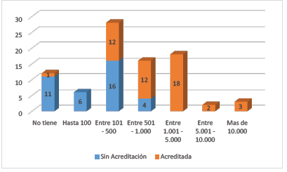 Con referencia a documentos publicados en Scopus, aquí también se observa que son las IES acreditadas -a través de los profesores-investigadores pertenecientes en su mayoría a programas acreditados-las que más figuran en esta base de datos (figura 3).