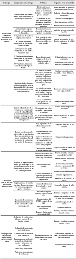 Con base en las anteriores estrategias, la propuesta de mejoramiento planteada debe asumirse como lo que es: una propuesta sujeta a discusión, sin la pretensión de convertirse en un decálogo que intenta enseñarle al MEN y a su SACES cómo realizar su trabajo -o que por sí misma conduzca estrictamente a la mejora-. Por consiguiente, lo que se pretende es que esta propuesta sirva como insumo para que dichas instancias puedan fortalecer el proceso asociado a la calidad de la educación en Colombia, en aras de incrementar su capacidad e impacto, a partir de una posible implementación.